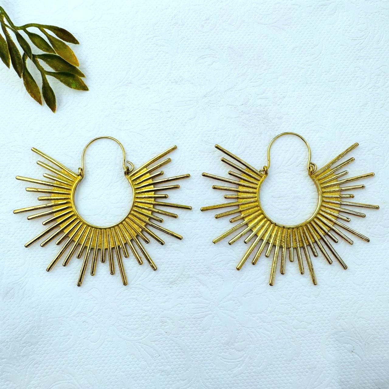 5/20 Pairs Radiant Sun Ray Hoop Brass Earrings