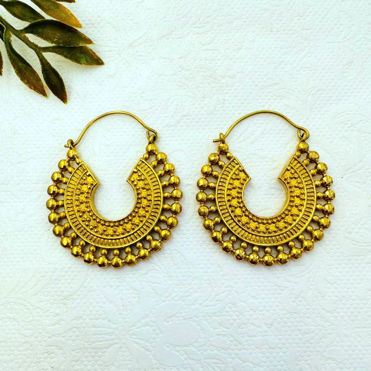 5/20 Pairs Ethnic Crescent Hoop Brass Earrings