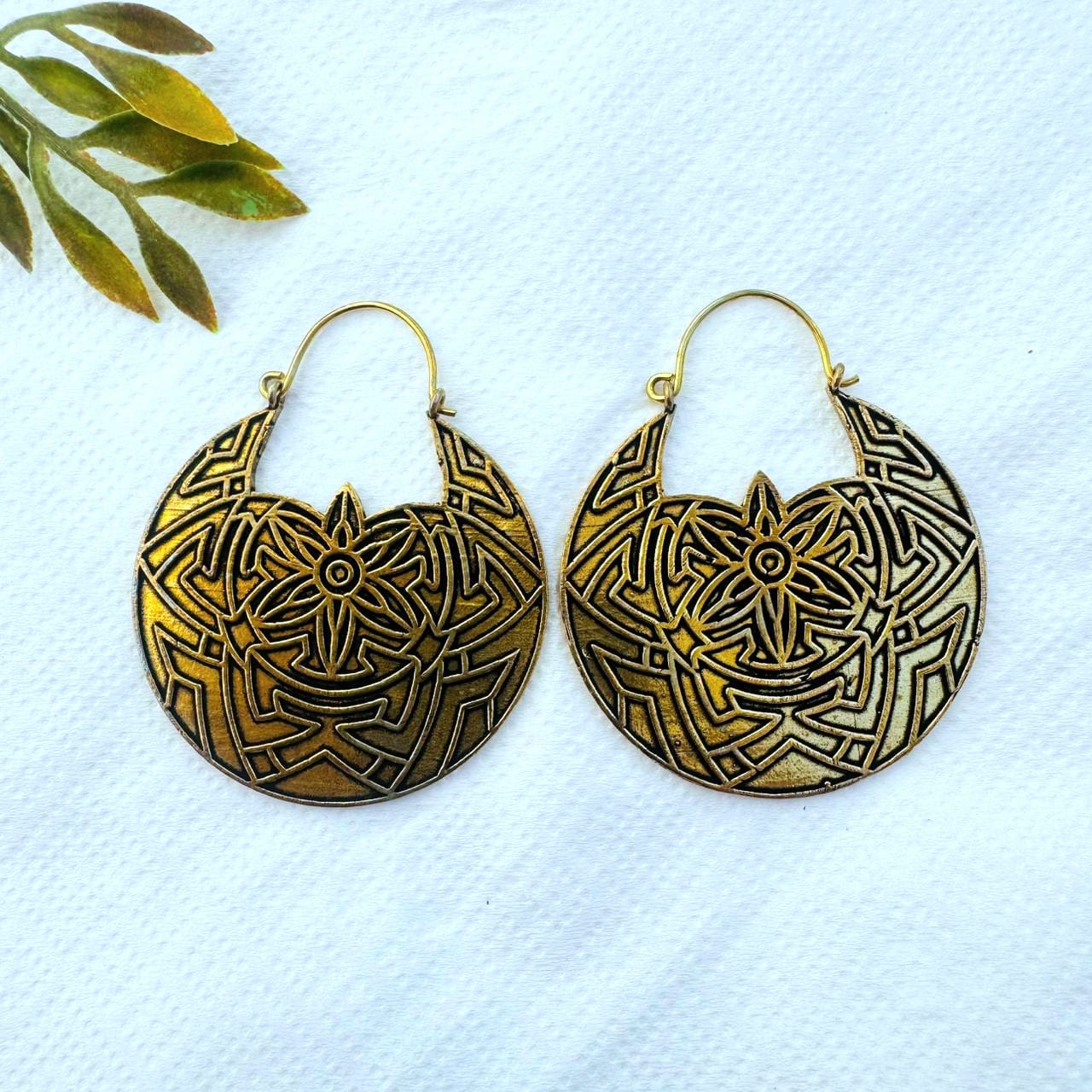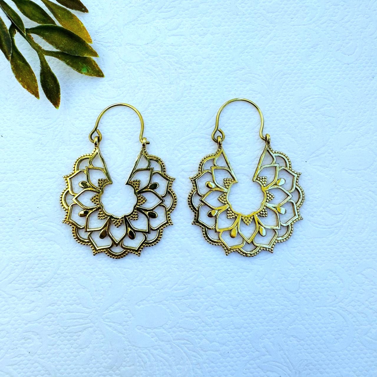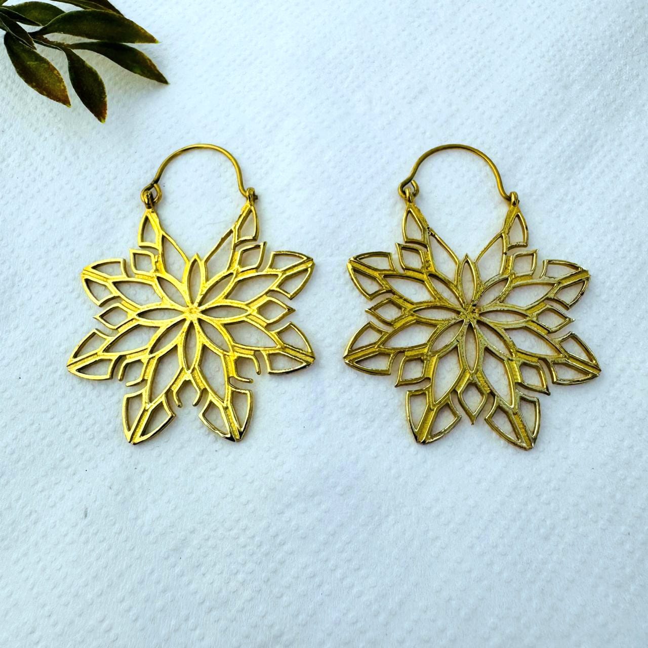 5/20 Pairs Floral Mandala Hoop Brass Earrings