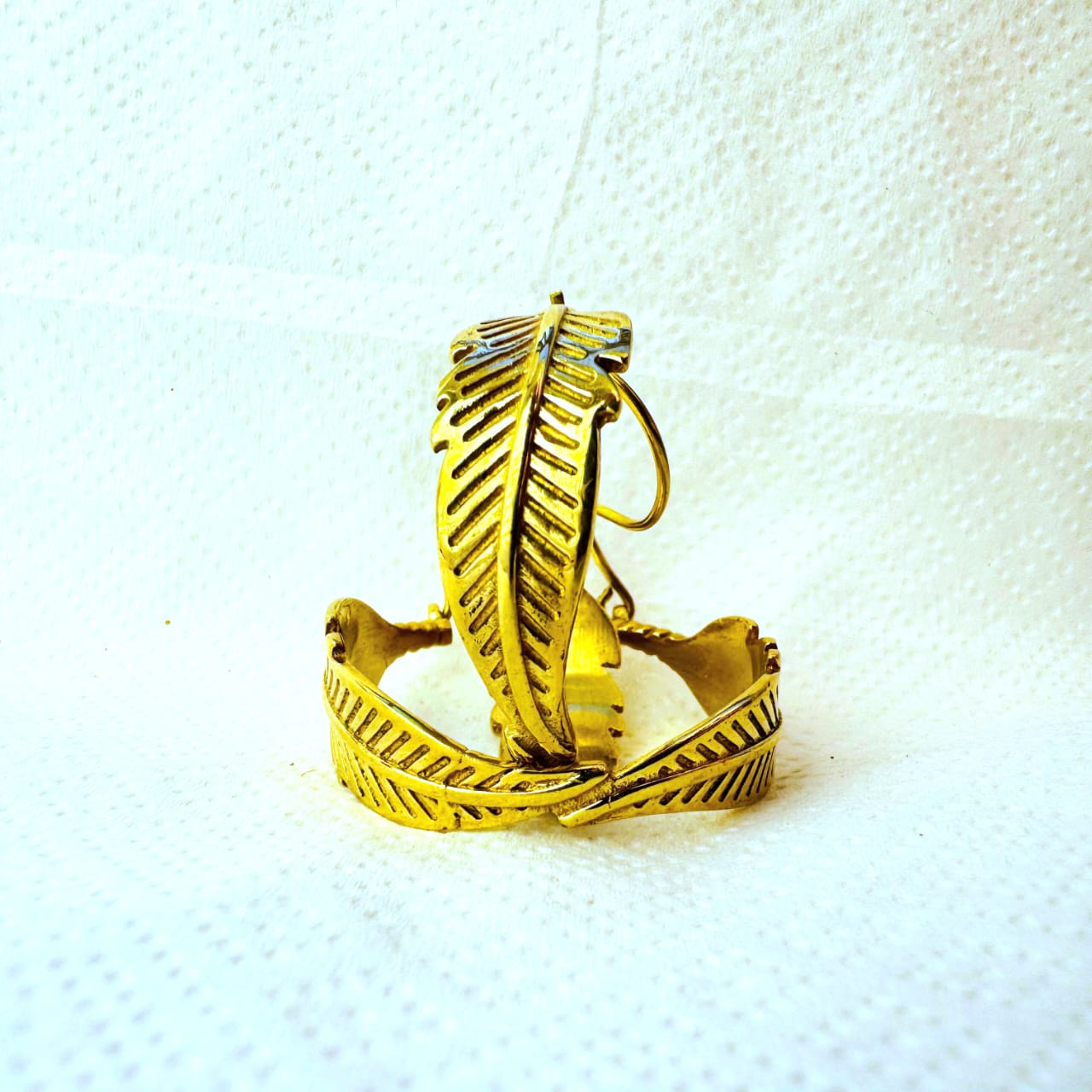 5/20 Pairs Feather Statement Hoop Brass Earrings