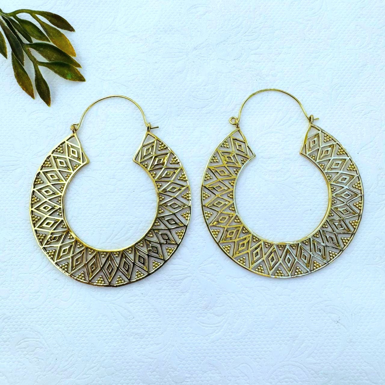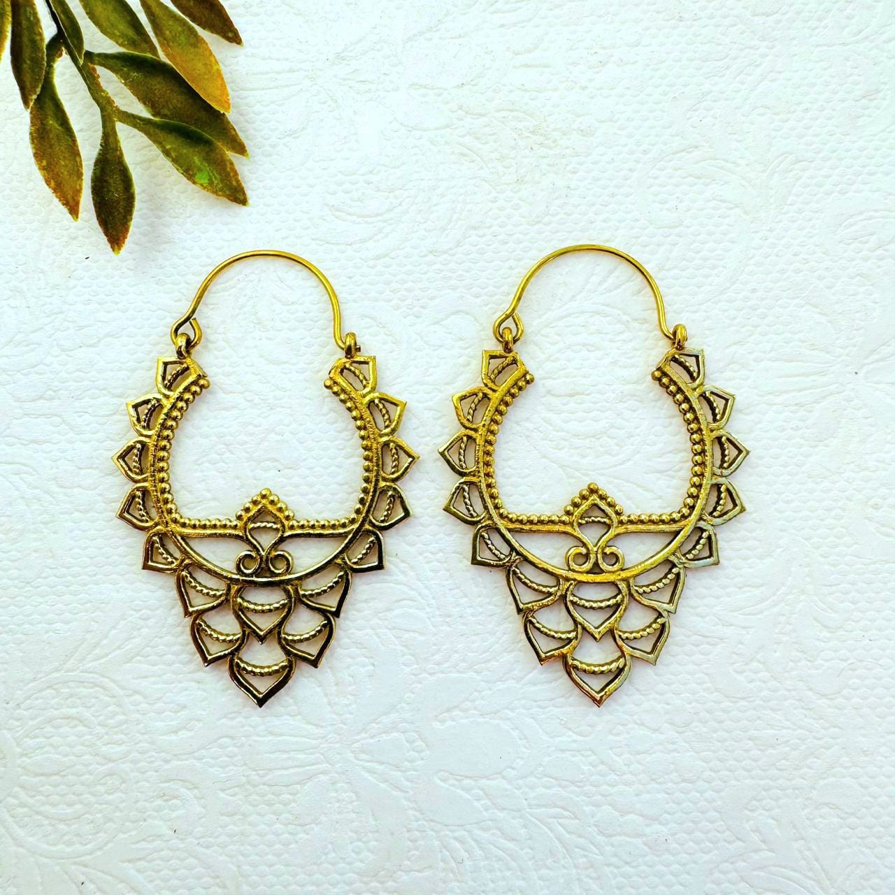 5/20 Pairs Floral Ornamental Hoop Brass Earrings