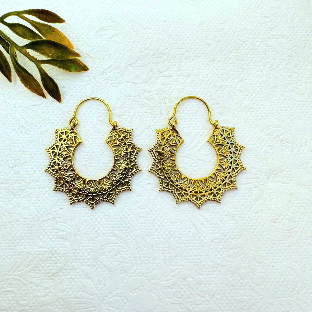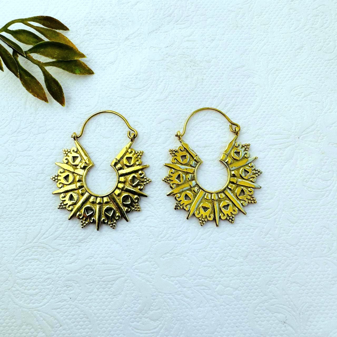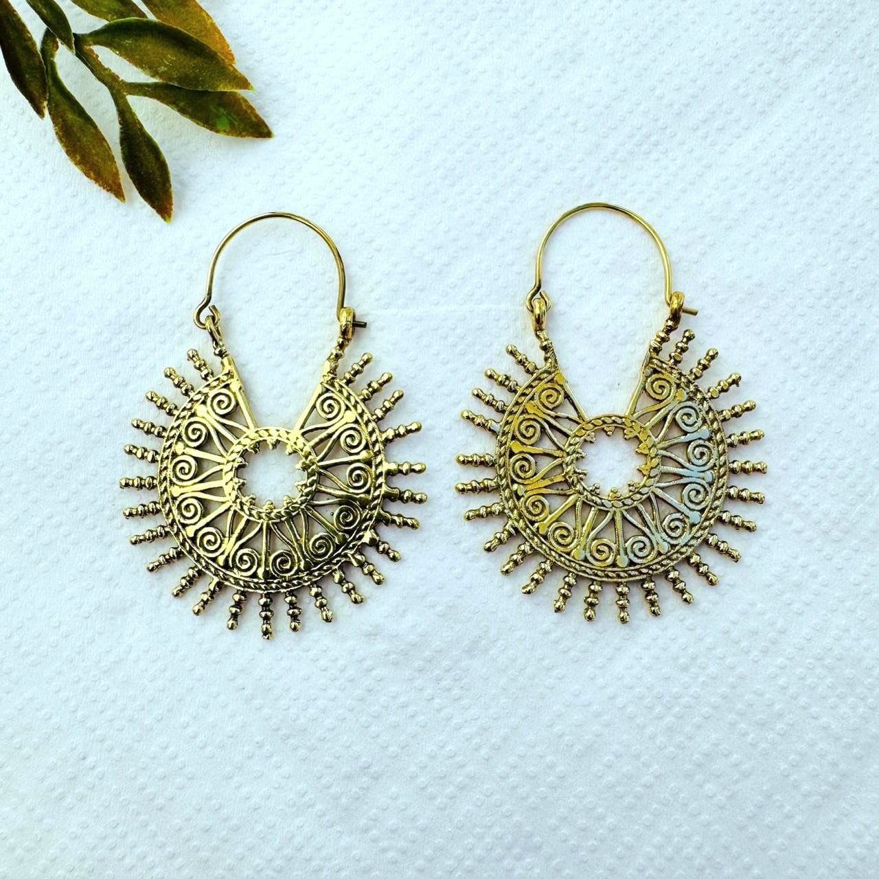 5/20 Pairs Tribal Sunburst Hoop Brass Earrings