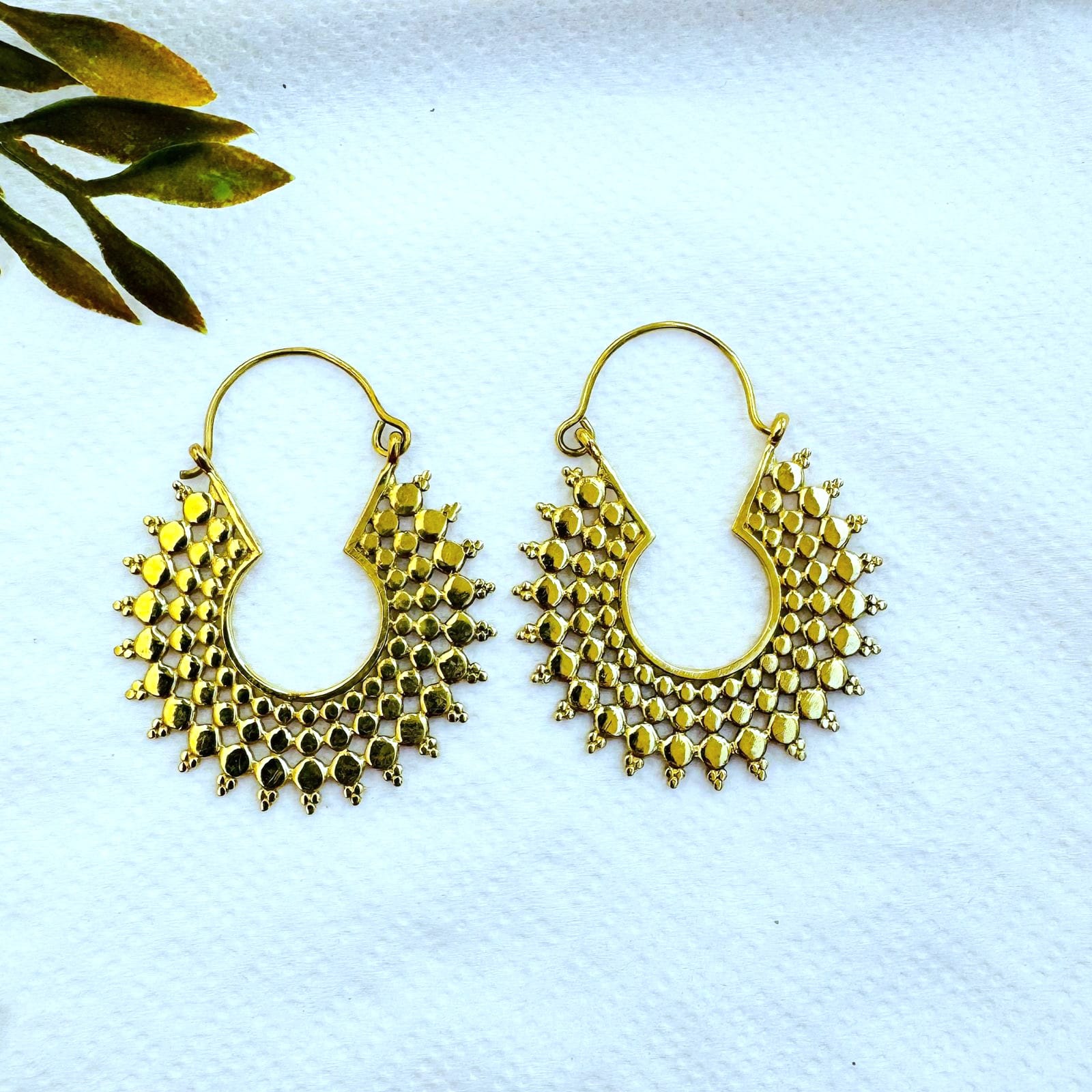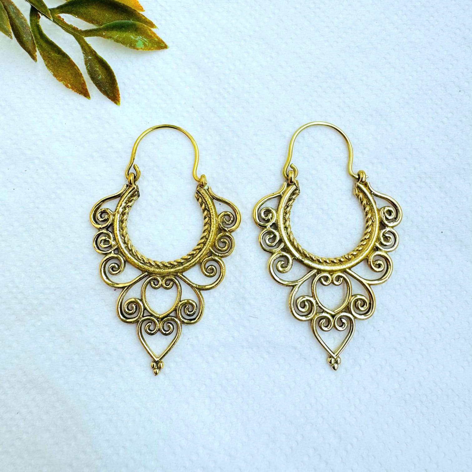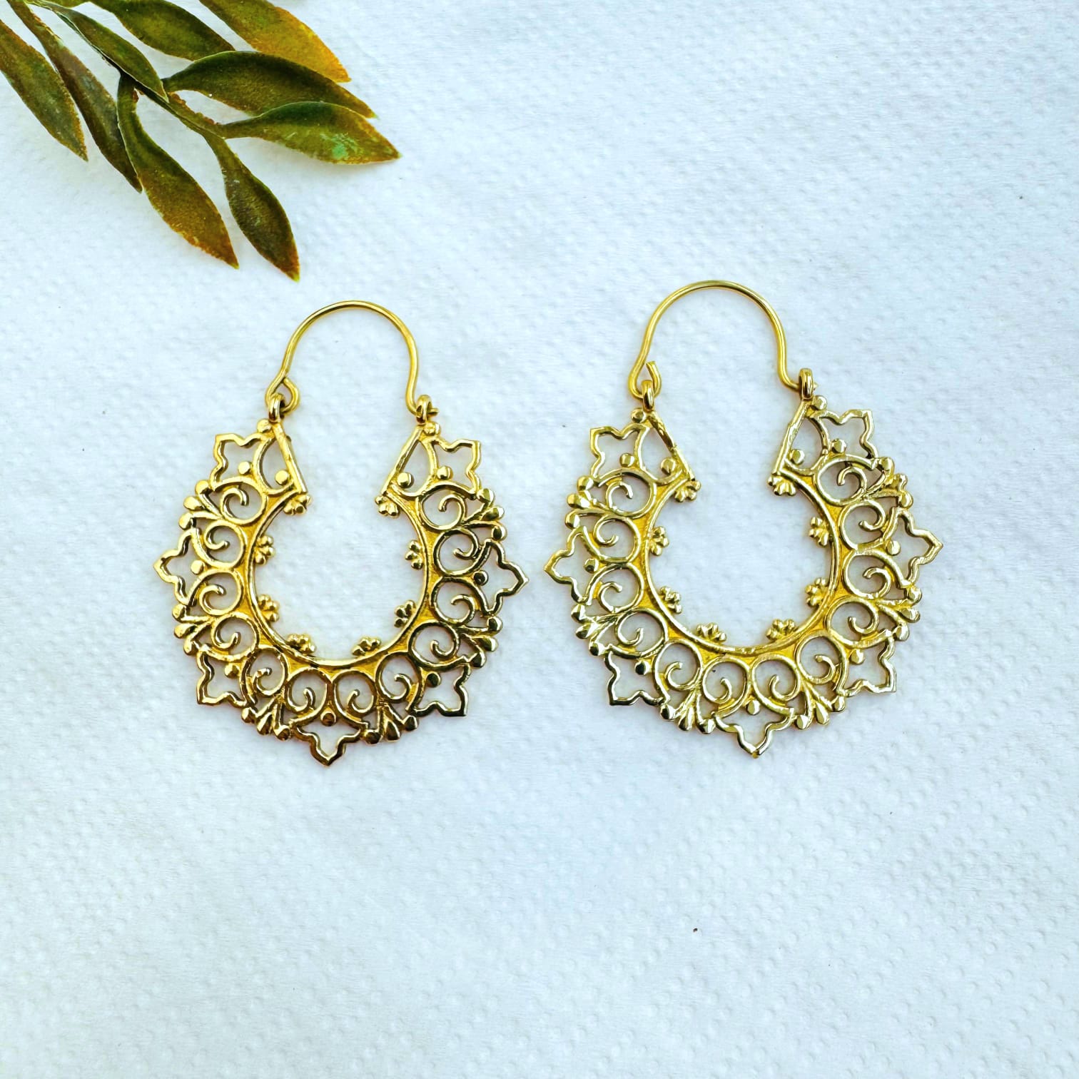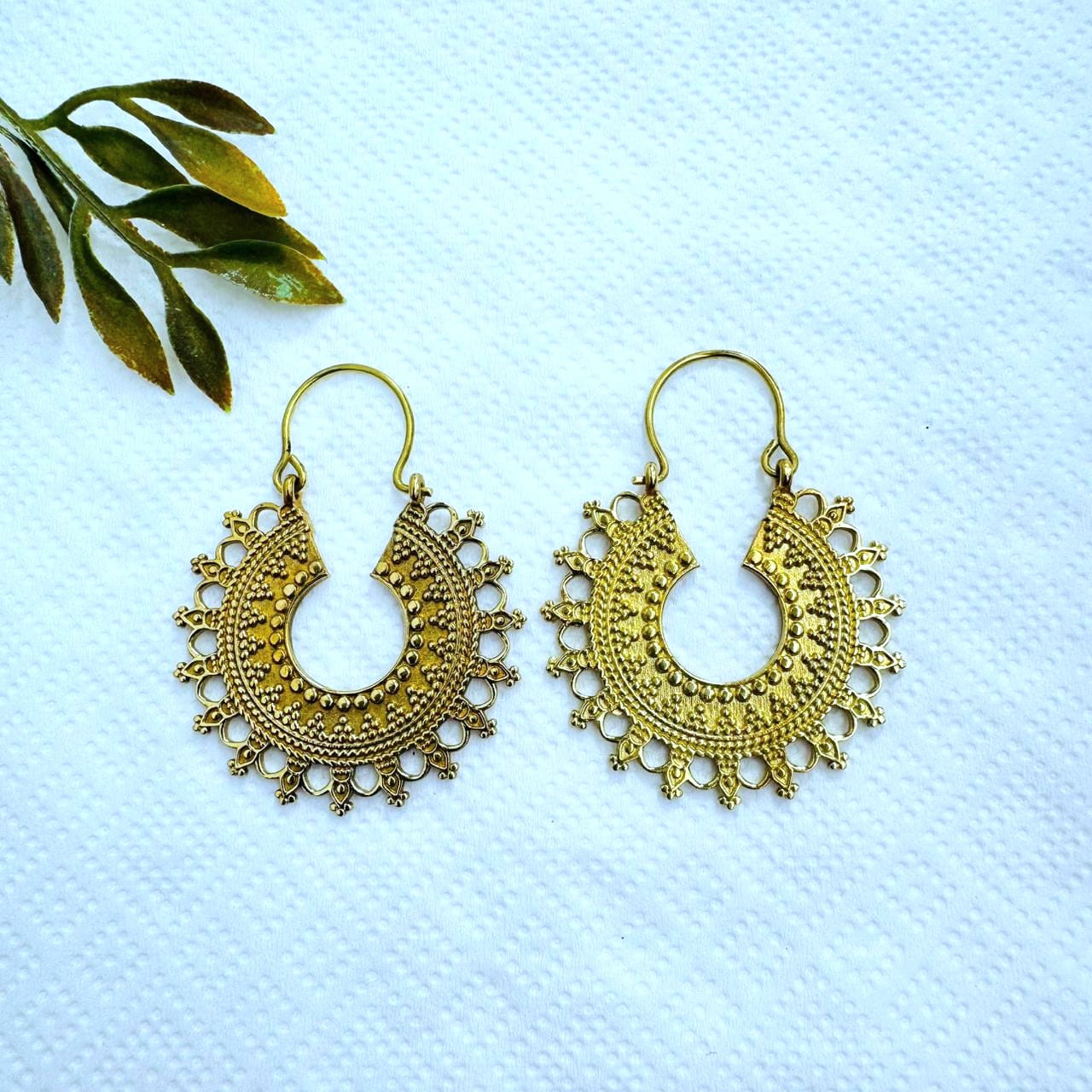 5/20 Pairs Leaf Edged Hoop Brass Earrings