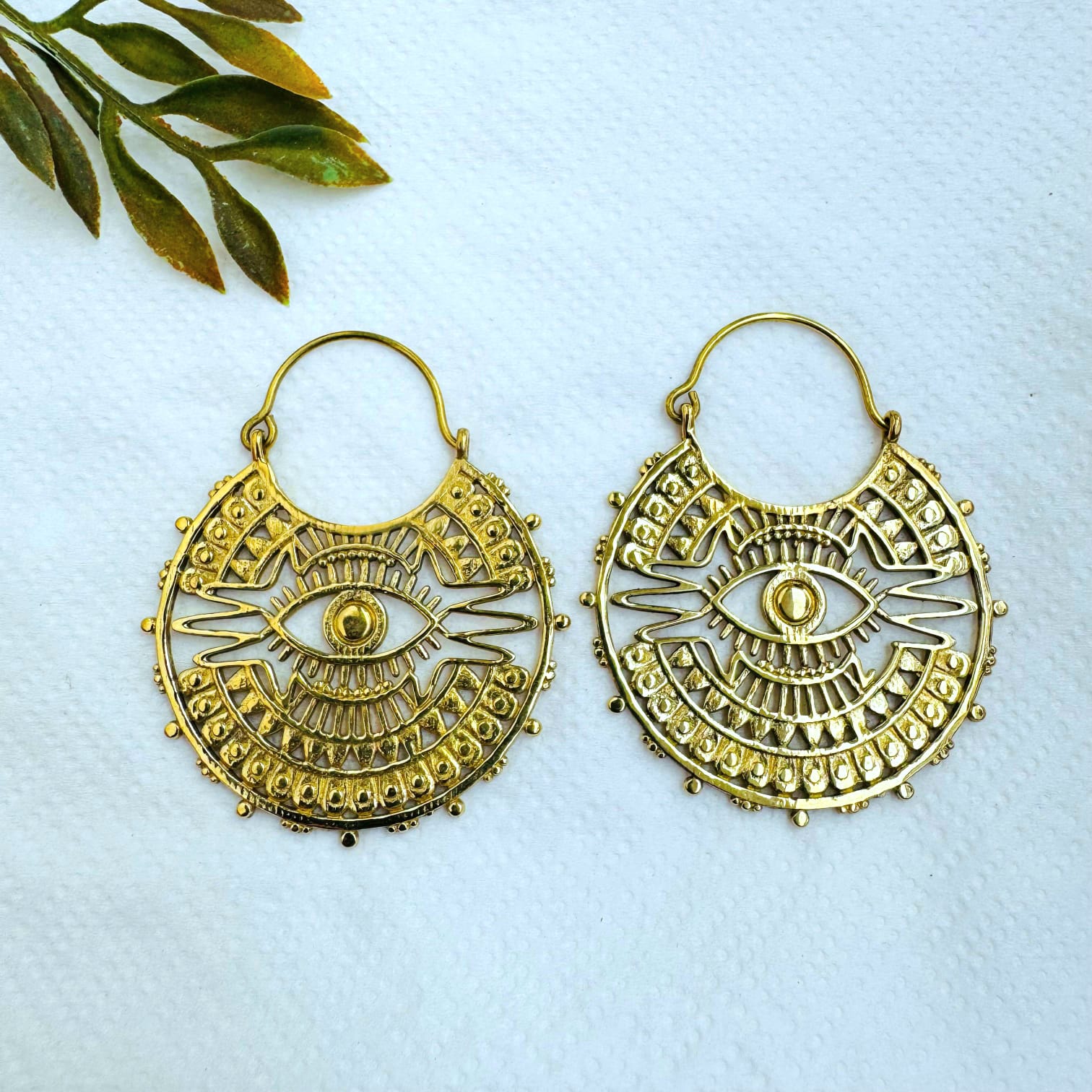 5/20 Pairs Evil Eye Mandala Hoop Brass Earrings