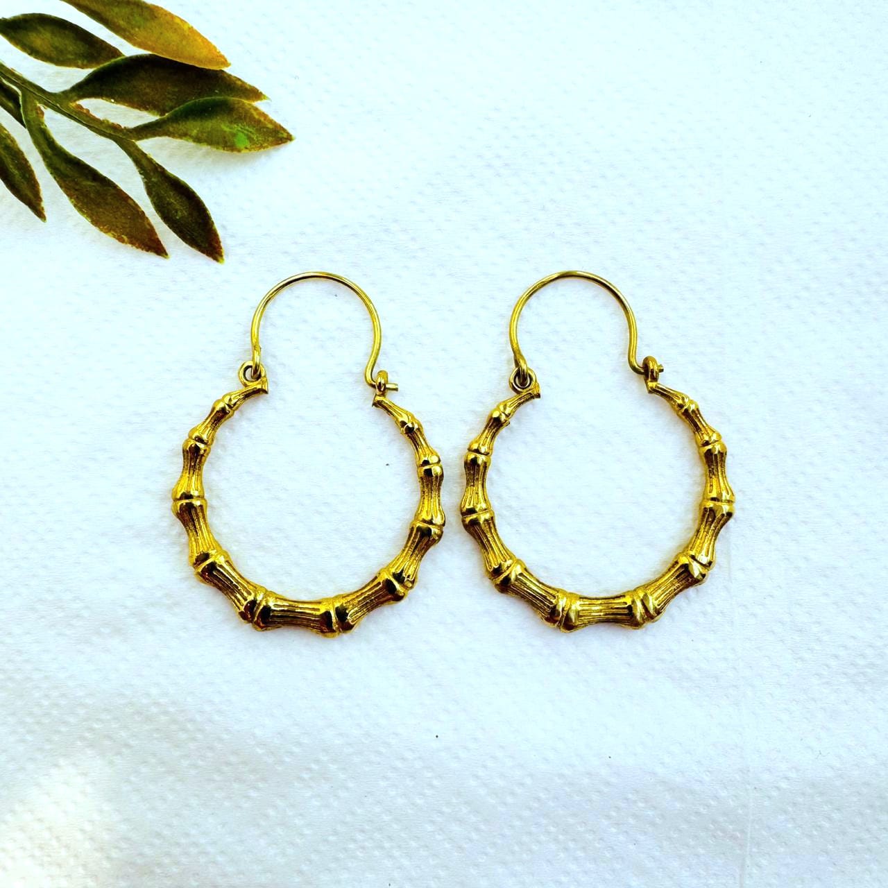 5/20 Pairs Bamboo Textured Hoop Brass Earrings
