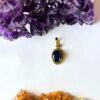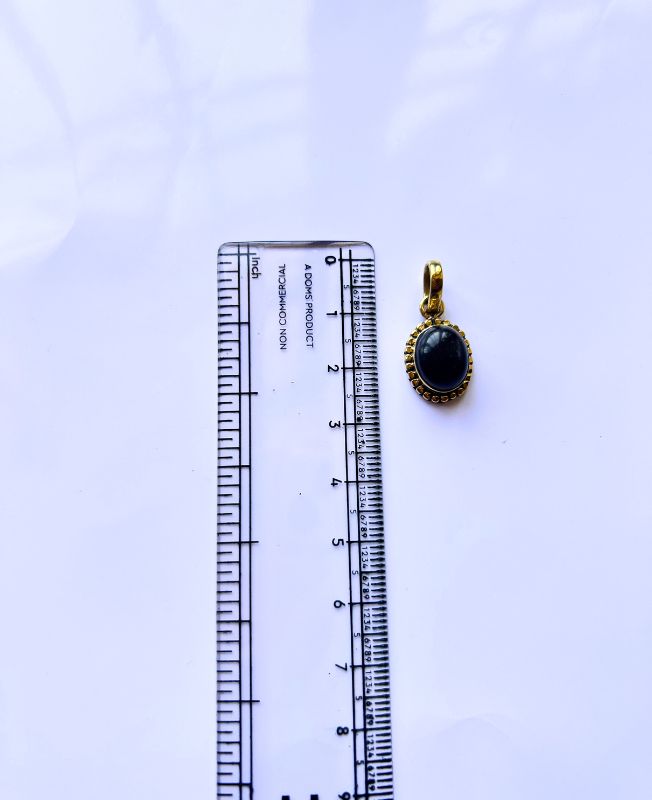 Brass Oval Pendant with Black Stone and Beaded Frame