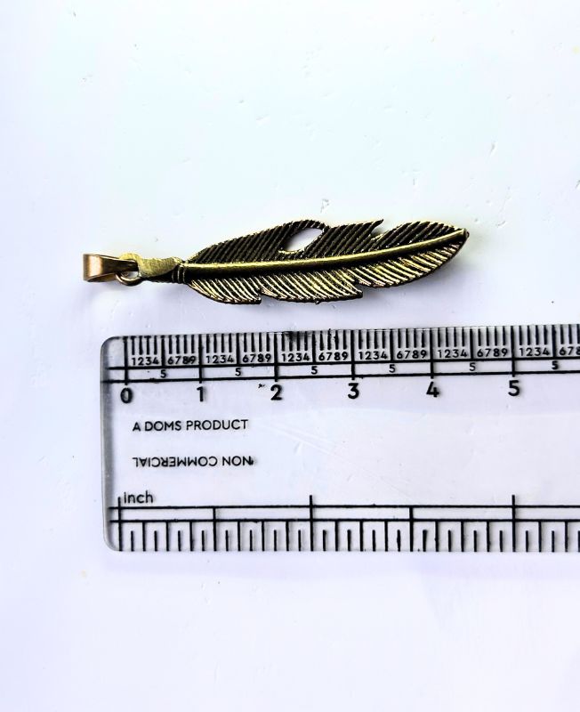 A handcrafted brass pendant in a detailed feather shape with tribal and bohemian essence. Perfect as a centerpiece for necklaces or creative DIY jewelry projects.