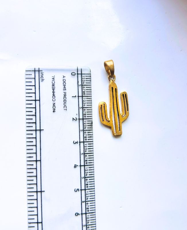 This brass pendant features a minimalist cactus silhouette with clean cutout lines and a polished golden finish. The design is lightweight yet sturdy, making it ideal for crafting single pendants or layering into desert-themed jewelry sets. The pendant’s size and smooth edges ensure easy pairing with a variety of chain styles. Whether for everyday wear or themed collections, this cactus piece brings warmth and personality to any design.