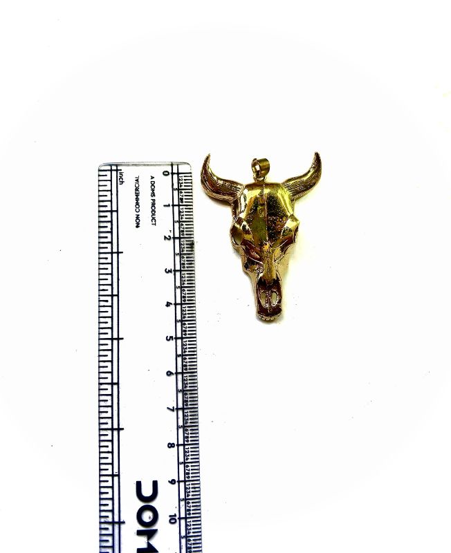 Bold and rustic brass pendant in the shape of a horned bull skull. Perfect for tribal-inspired jewelry designs or as a symbolic charm representing strength and resilience.