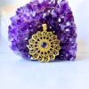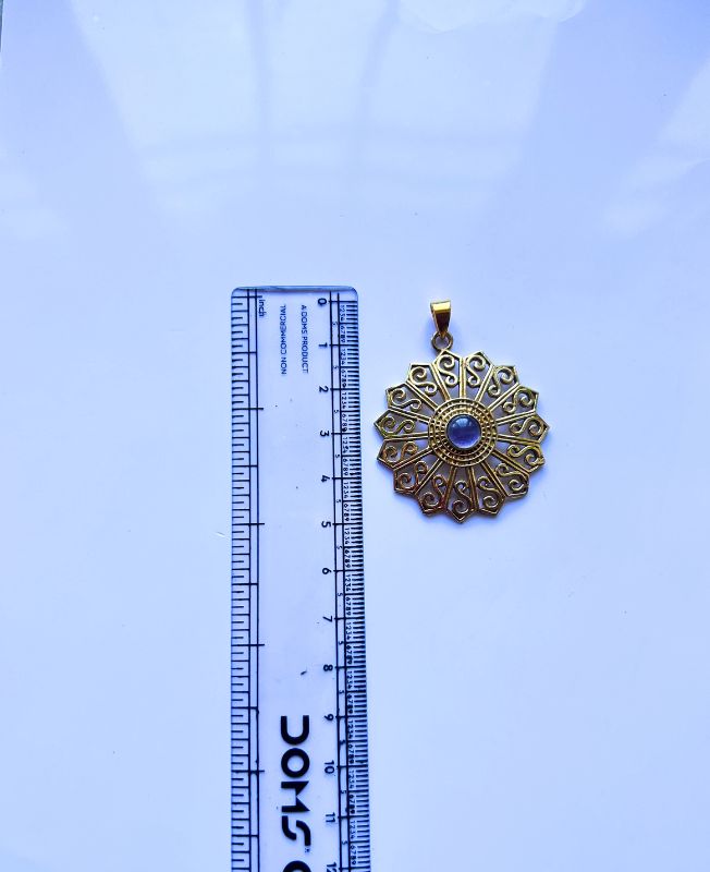 Beautifully detailed mandala pendant handcrafted from solid brass. Features a circular mandala design with a gemstone set at its center for an elegant spiritual touch.