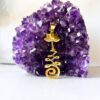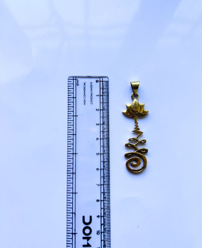 This handcrafted brass pendant showcases a serene lotus blossom resting above a fluid spiral symbol, representing growth, energy flow, and enlightenment. The design is inspired by sacred geometry and spiritual symbolism, making it a meaningful addition to any jewelry creation.