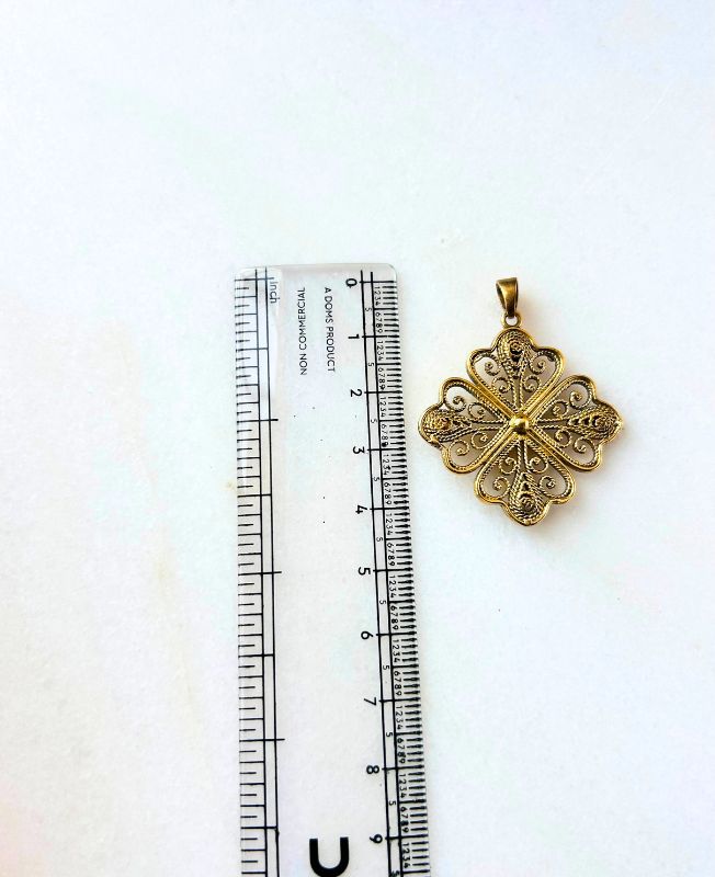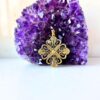 Elegant brass pendant in a four-leaf filigree mandala design. Perfect as a bohemian focal charm for necklaces, macramé projects, or jewelry making.