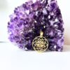 Elegant circular brass pendant featuring a sacred geometry motif. Lightweight, finely detailed and perfect for spiritual, bohemian or artisanal jewelry lines.