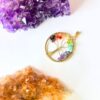 A beautiful round Tree of Life pendant handcrafted in brass, adorned with seven chakra-colored natural stones. Ideal for spiritual jewelry, healing accessories, or symbolic gift items.