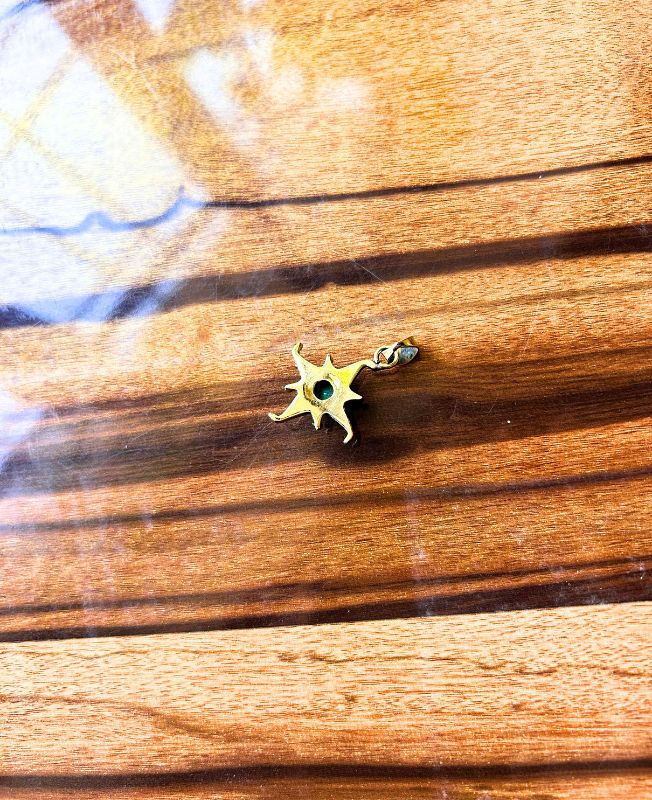 This detailed brass starfish pendant captures the organic elegance of the ocean. The piece features a polished turquoise cabochon at its heart, representing serenity and natural strength. Crafted from solid brass with a lightly aged golden finish, it offers both durability and warmth. Ideal for use in macramé necklaces, statement earrings, or as a centerpiece for artisanal jewelry projects. Each pendant is individually cast and polished, giving it unique texture and charm.