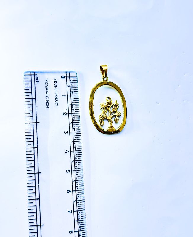 Intricately crafted brass pendant featuring a symbolic Tree of Life within an oval frame, perfect for meaningful jewelry designs or spiritual accessories.