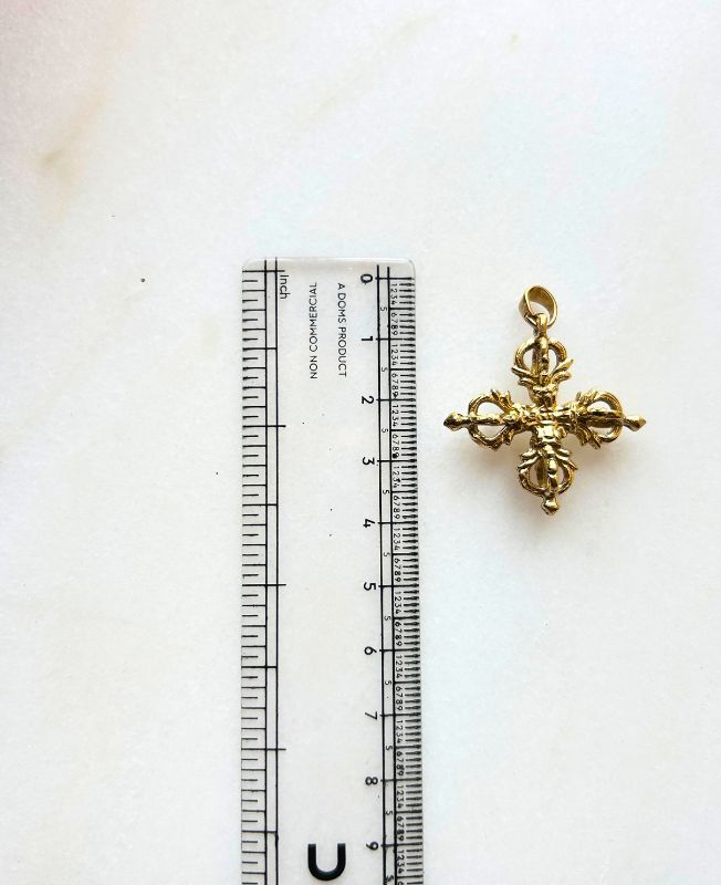 Antique-style brass Vajra (Dorje) cross pendant, symbolizing strength, spiritual power, and protection. Perfect for yoga jewelry, bohemian fashion, and spiritual statement necklaces.