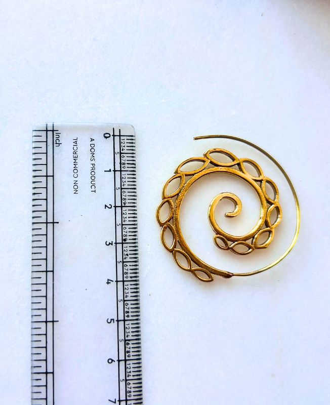 Elegant brass spiral earrings featuring an open filigree leaf pattern. Lightweight, artistic, and perfect for bohemian, tribal, or ethnic styles.