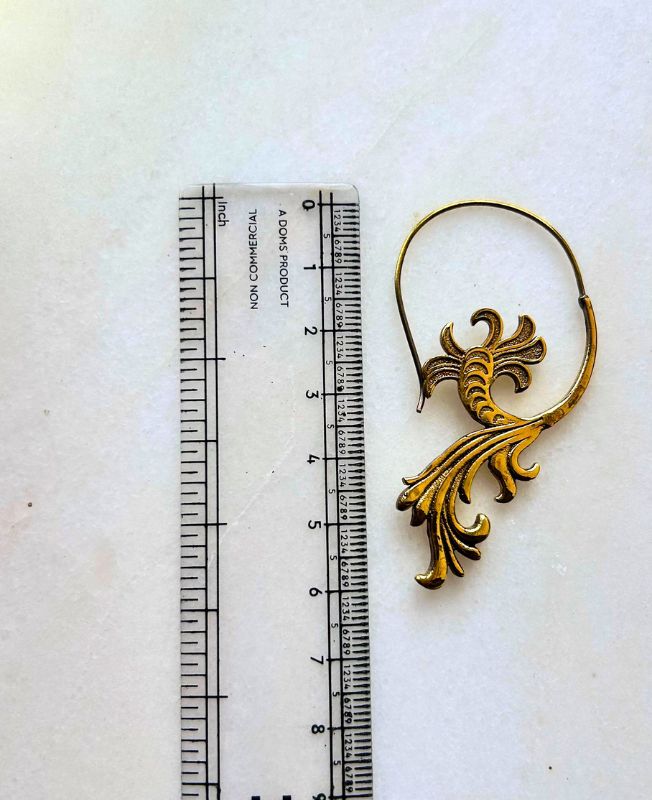 This exquisite brass filigree leaf hook earring is a stunning statement piece inspired by nature. The design features elegant curves and leaf-like motifs with a beautifully textured finish. Handcrafted from durable brass, this piece combines traditional craftsmanship with contemporary style. Perfect for bohemian, ethnic, or artistic looks, it can be worn as a single earring or as part of an asymmetrical jewelry combination.