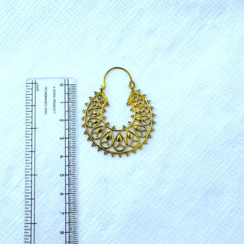 Handcrafted gold plated brass earring featuring an intricate filigree and delicate dot detailing. Lightweight and perfect for a bold yet elegant look.