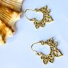 5 Pairs Etched Floral Square Mandala Hoop Brass Earrings