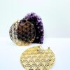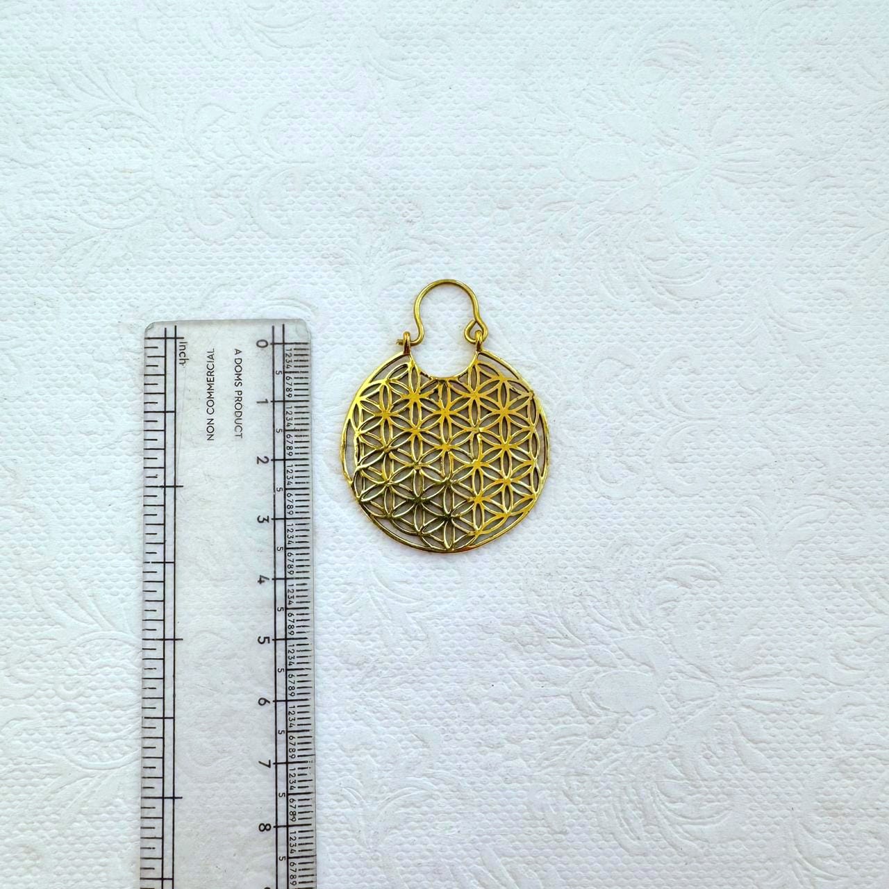 Handcrafted gold plated brass earring featuring an intricate design with a openwork Flower of Life geometric pattern. Lightweight and perfect for a bold yet elegant look.