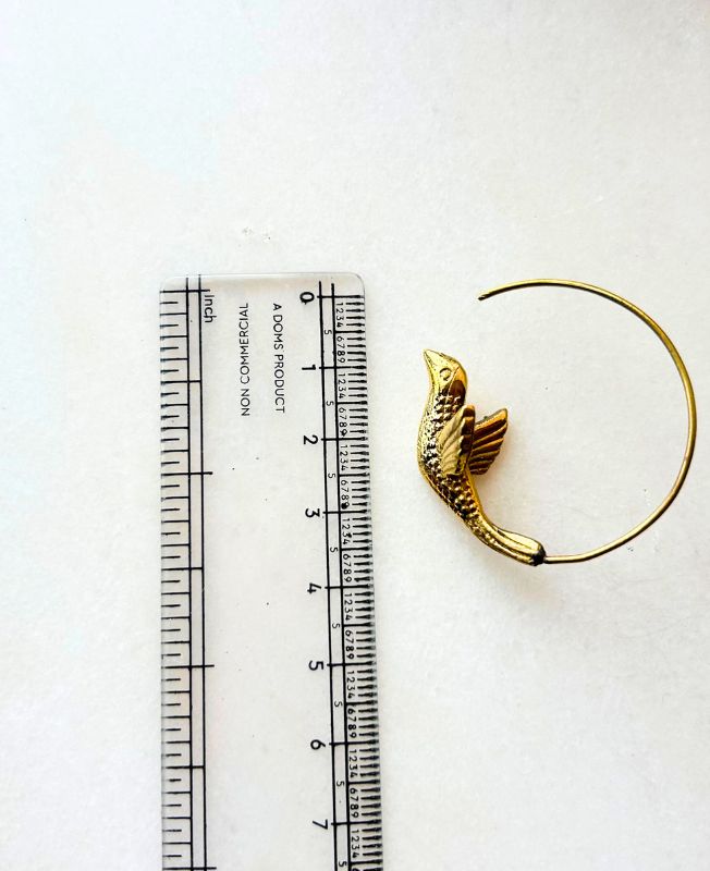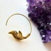 Elegant brass hoop earring featuring a beautifully detailed flying bird motif, handcrafted with care for a unique, artistic look. Perfect for bohemian, tribal, or spiritual styles.
