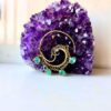 These exquisite brass hoop earrings showcase a captivating swirl filigree design adorned with four teardrop-shaped green gemstones, beautifully set to reflect light with every movement. The handcrafted details highlight traditional metalwork, creating an elegant and artistic piece that adds a vibrant touch to any look.