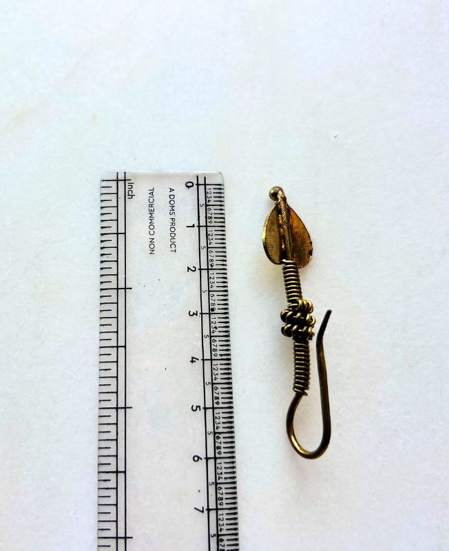 This handcrafted brass earrings features a striking hook-shaped design made with twisted and coiled wire detailing, giving it a raw, artisanal look. The piece captures a blend of rustic craftsmanship and bold geometry, ideal for anyone who appreciates unique, non-traditional jewelry elements.