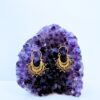 Handcrafted gold plated brass earring in a unique detailed crescent and heart pattern border. Lightweight and perfect for a bold yet elegant look.
