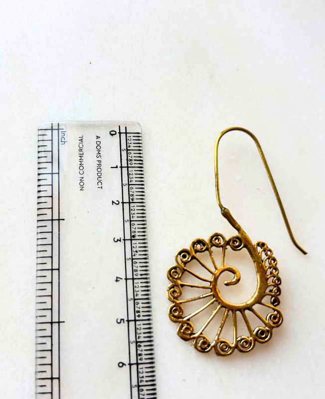 Elegant brass spiral earrings with intricate filigree design lightweight, artistic, and full of bohemian charm.