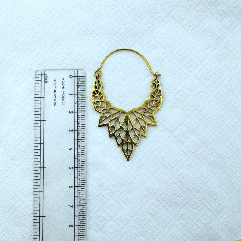 These striking brass earrings feature a beautifully layered leaf motif with intricate openwork detailing. The symmetrical design flows from the top into cascading leaf shapes, creating depth, texture, and elegant movement. Inspired by tribal and nature elements, these earrings make a powerful statement while remaining lightweight and comfortable to wear.