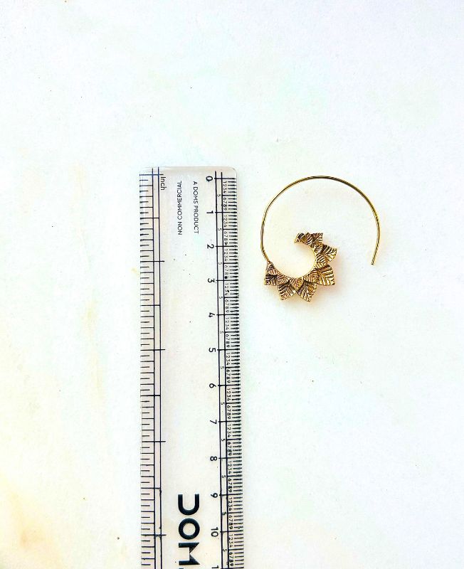 Intricately designed brass hoop earring inspired by tribal patterns. Lightweight and elegant, perfect for bohemian or ethnic styles.
