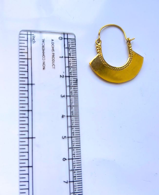 Handcrafted gold plated brass earring in a unique fan shape with tribal detailing. Lightweight and perfect for a bold yet elegant look.