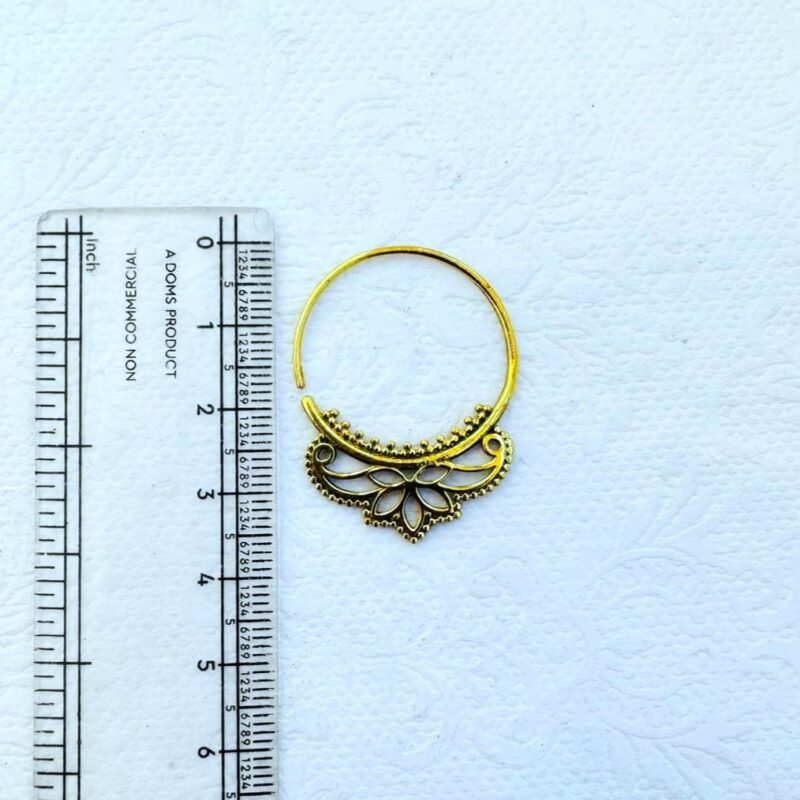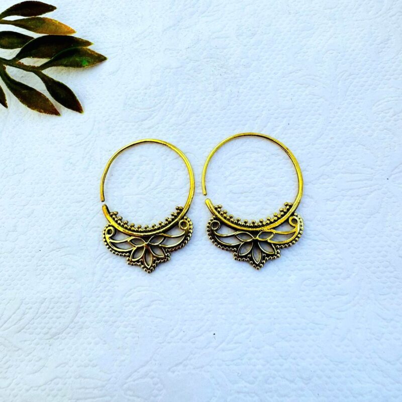 5 Pairs Ornate Floral Hoop Brass Earrings