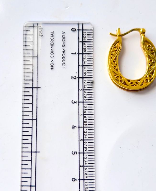These beautiful horseshoe-shaped earrings are crafted from high-quality brass with a rich antique gold finish. The open hoop design is complemented by ornate filigree work that adds texture and vintage appeal.