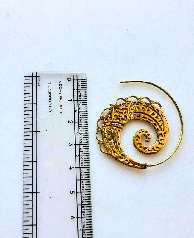 Intricately designed brass spiral earrings featuring detailed tribal filigree patterns. Lightweight yet bold, these earrings add a unique bohemian touch to any outfit.