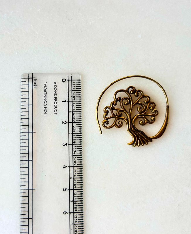 These stunning Tree of Life brass hoop earrings capture timeless symbolism and natural beauty. Meticulously crafted with intricate scrollwork branches and flowing roots, they represent harmony, strength, and eternal growth.