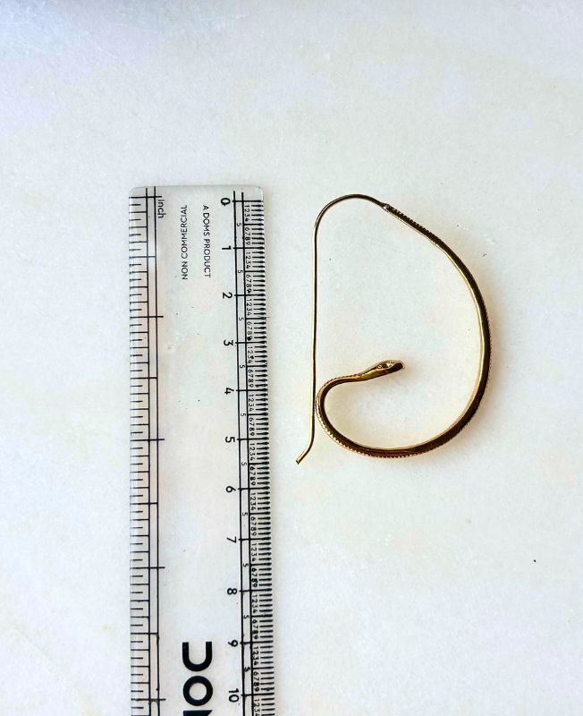 Elegant and artistic snake-shaped brass hoop earrings, symbolizing transformation and grace. Handcrafted with a sleek curved design that wraps delicately around the ear.