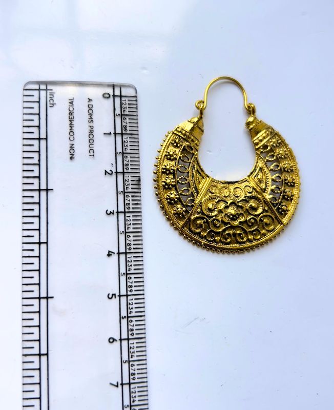 Ornate Brass Hoop Earrings With Floral Filigree Detailing Design in Antique Gold for Jewelry Designs