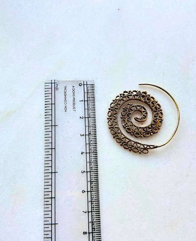 This stunning brass spiral filigree earring combines traditional craftsmanship with a modern tribal aesthetic. The spiral design symbolizes growth and energy flow, while the ornate filigree adds artistic depth and texture.