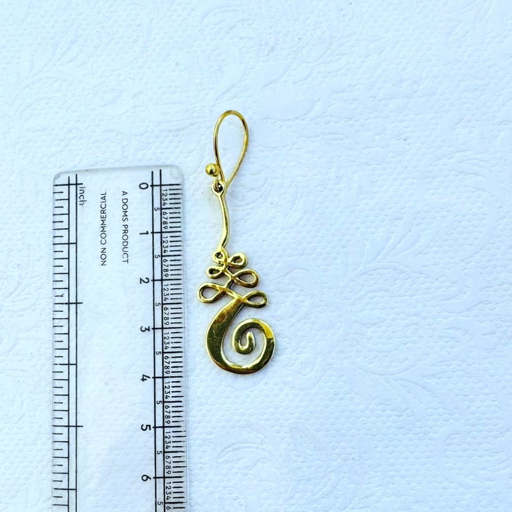 Handcrafted gold plated brass earring featuring the sacred spiral symbol, these elegant and slender earrings. Lightweight and perfect for a bold yet elegant look.