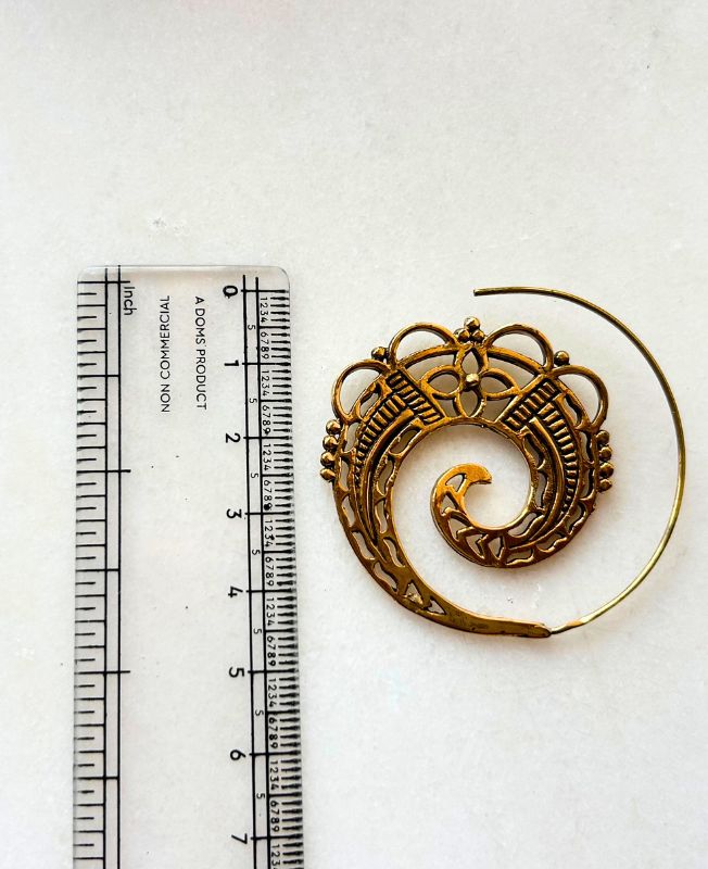 These exquisite spiral filigree brass earrings showcase a stunning handcrafted design inspired by traditional tribal and bohemian aesthetics. The detailed swirling pattern reflects balance, flow, and creativity making them a striking accessory for everyday wear or special occasions.