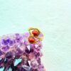 This stunning double-stone brass ring showcases a contemporary open design symbolizing balance and duality. Each side holds a polished red stone, adding a vibrant touch to the warm brass tone. Entirely handmade by skilled artisans, this piece combines traditional craftsmanship with modern minimalism.