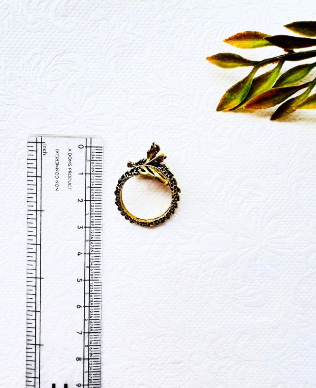 Intricately handcrafted brass ring featuring a dragon coiled design, symbolizing strength, protection, and transformation. Its open adjustable band ensures a comfortable fit for most sizes perfect for fantasy lovers, gothic jewelry enthusiasts, or statement collections.