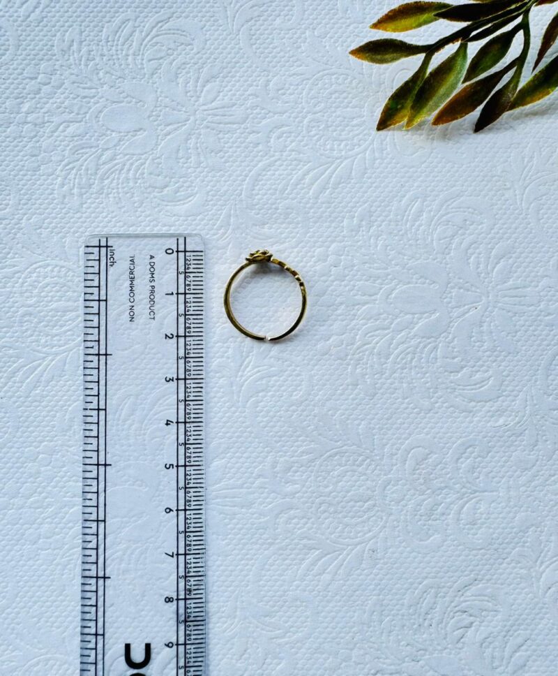 A dainty brass ring featuring a delicate rose and vine motif, ideal for stacking or a subtle nature-inspired accent.