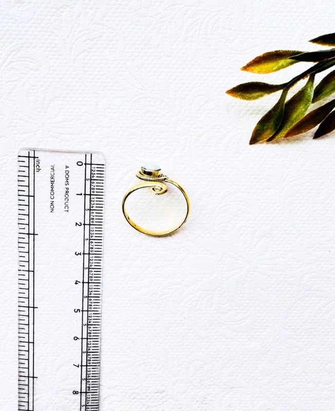Elegant handcrafted brass ring with a luminous white stone centerpiece. Designed in a spiral open-band style, this adjustable ring offers both beauty and comfort