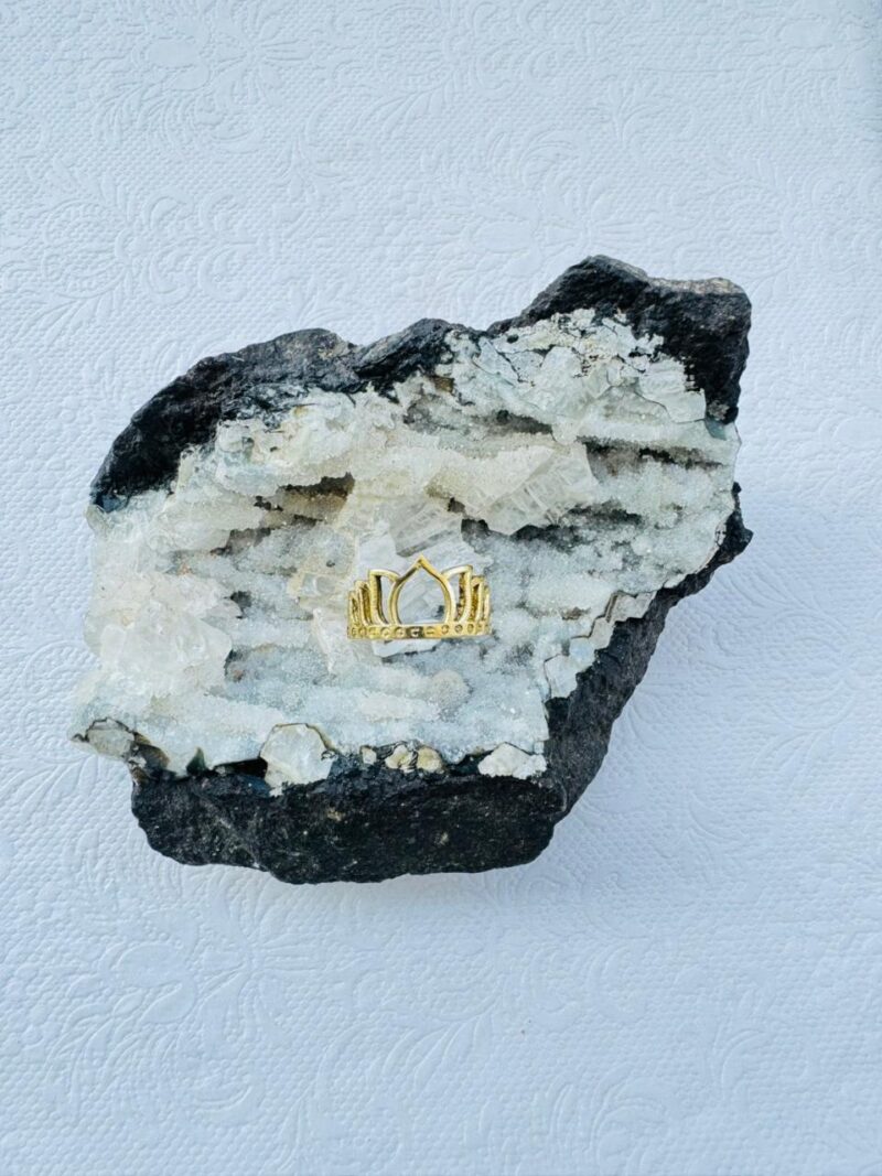 A regal and spiritual brass ring featuring an openwork lotus crown design. This adjustable piece blends royal elegance with sacred symbolism, perfect for bohemian and mindful jewelry collections.