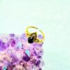 Brass Lotus Flower Adjustable Stone Ring with Black Stone