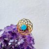 Brass Lotus Grid Ring with Turquoise Stone